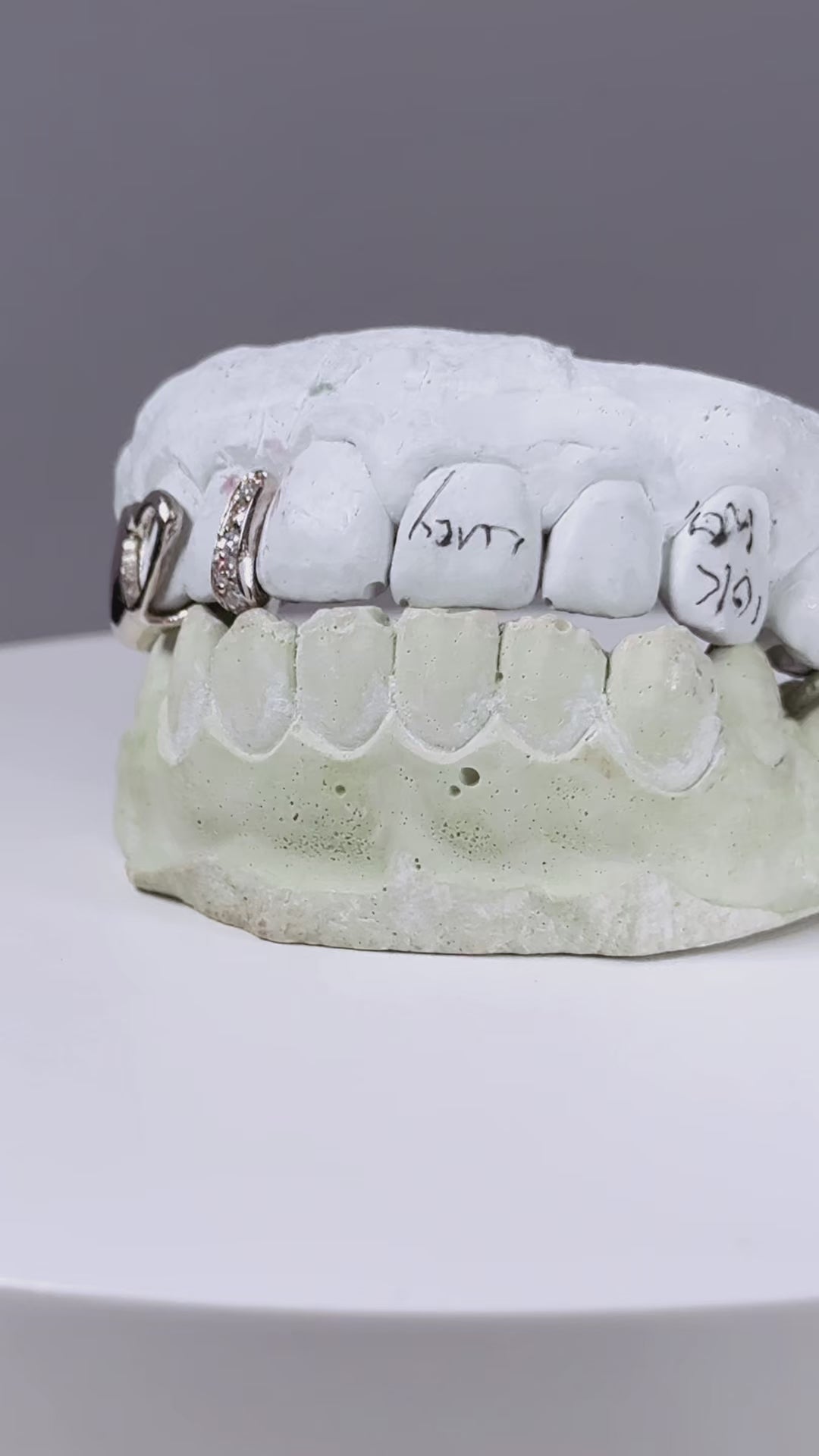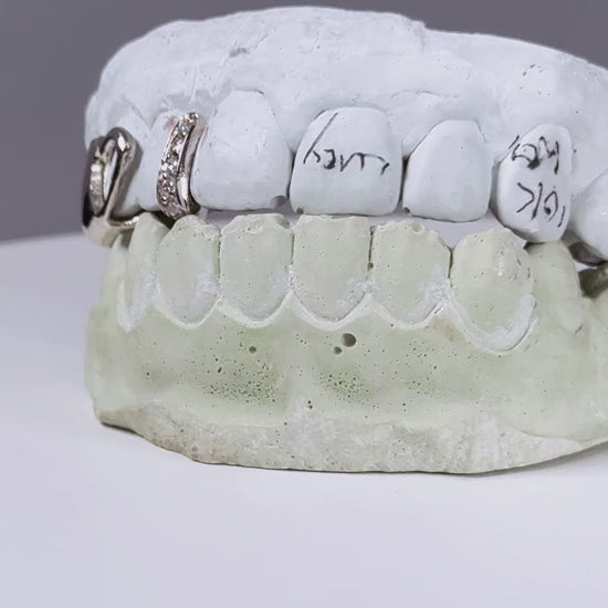 This piece will include your Pre-molar, fang, and space between your incisor. All diamonds are Laboratory Grown.